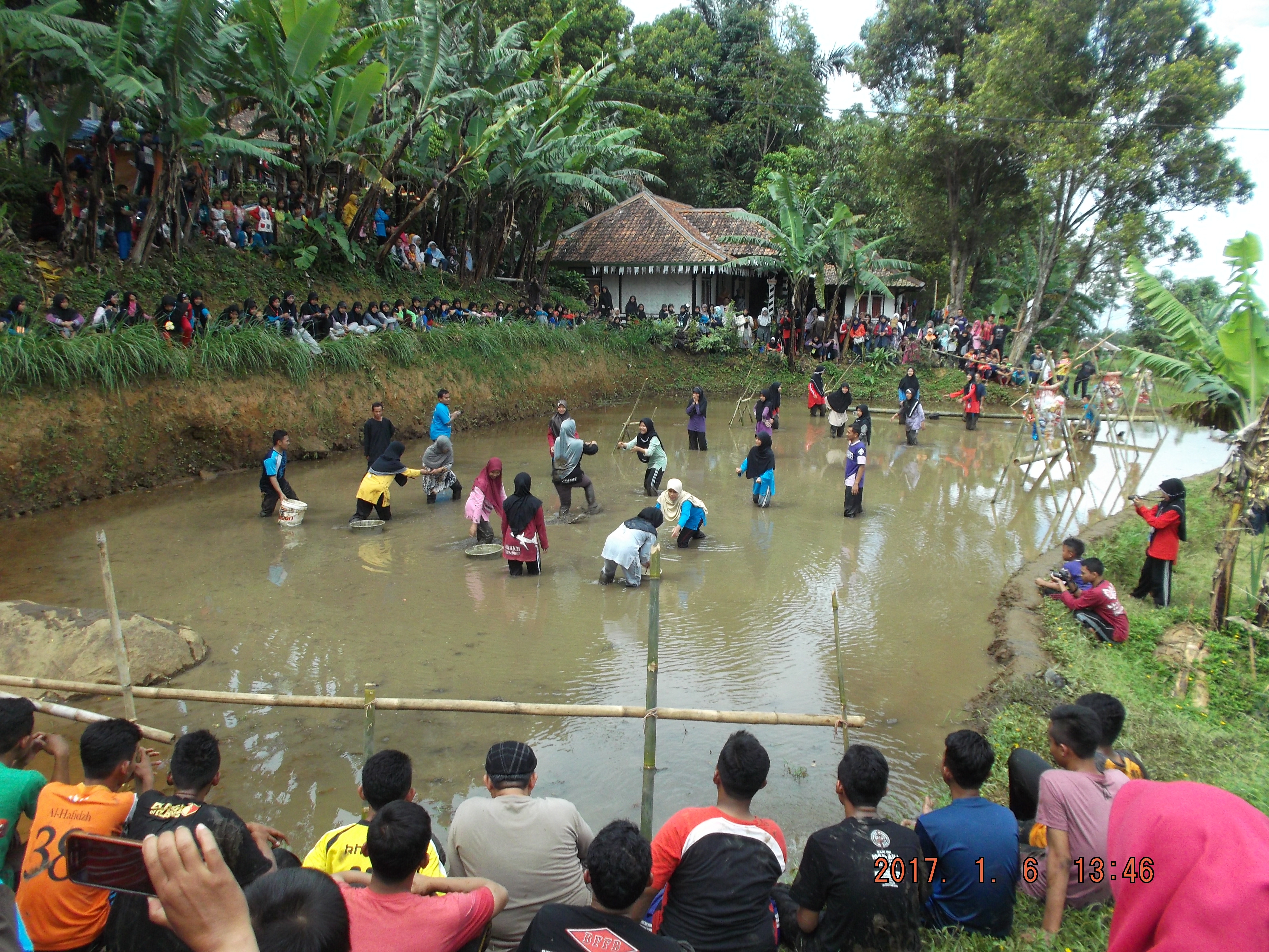 SIANG itu ratusan siswa Sekolah Islam Terpadu Yayasan Kharisma Darussalam, Kotabaru, Cikampek, Karawang, Jawa Barat, mengikuti aneka permainan edukatif di kolam di desa wisata Kampung Tajur, Desa Pesanggrahan, Kecamatan Bojong, Purwakarta, Jawa Barat.