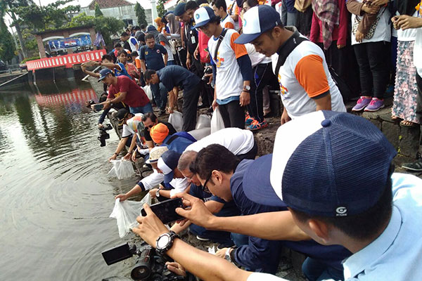 SEBANYAK 25 ribu benih ikan lele ditenar di Polder Tawang, Kota Semarang, Jawa Tengah, dalam rangkaian HUT ke-5 Partai NasDem.