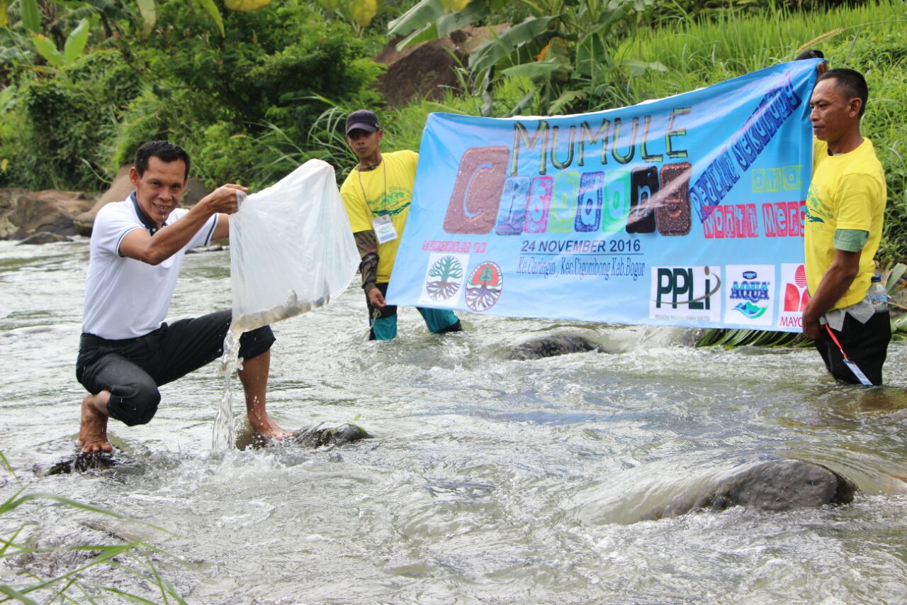 BERTEMPAT di Desa Pasir Buncir, Caringin Bogor, Jawa Barat, Ketua DPRD Kabupaten Bogor Ade Ruhandi bersama penggerak Cisadane hulu dan lingkungan (Pacing), Volunteer Eagle, dan Satgas Lingkungan Hidup, serta masyarakat sekitar bahu membahu membersihkan sampah di hulu Sungai Cisadane.
