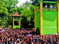 RIBUAN orang berdesak-desakan untuk mendapatkan kue apem yang dilempar panitia dalam acara sebar apem yaqowiyu Ki Ageng Gribig, di Lapangan Sendang Plampeyan, Jatinom, Klaten, Jawa Tengah, Jumat (18/11).