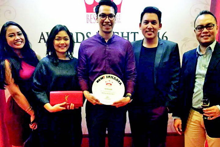 MARKETING Director Branche Resto Ajie Nugroho menerima penghargaan dari Now Jakarta's Best Restaurant, Bar and Cafe (BRBC) Awards, di Jakarta, Kamis (8/9).