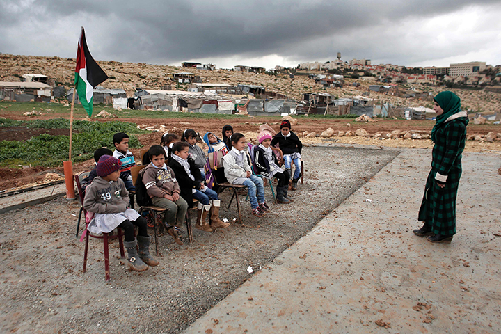 PAGI itu, Senin (22/2), sejumlah murid tiba di lokasi yang sedianya menjadi sekolah baru mereka di permukiman Abu Nawwar, dekat Jerusalem, Tepi Barat, Palestina.