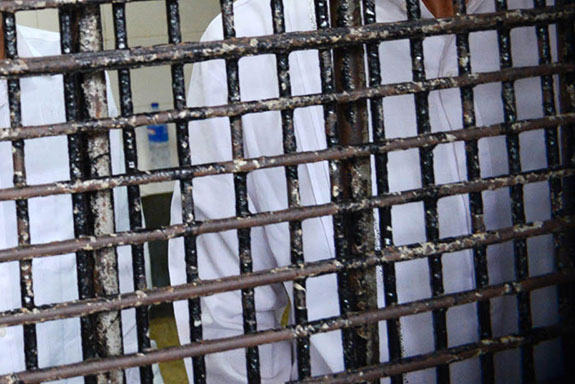 SEORANG pawang harimau di Gembira Loka Zoo (GL Zoo) Yogyakarta, Sage, 37, Kamis (21/7) duduk di kursi pesakitan Pengadilan Negeri Yogyakarta.