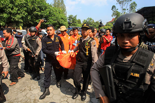 JENAZAH pelaku serangan bom bunuh diri di Mapolres Kota Surakarta, Nur Rohman, warga RT 01 RW 12 Kelurahan Sangkrah, Kecamatan Pasar Kliwon, Solo, dimakamkan di Polokarto Sukoharjo, Jateng, Senin (11/7).