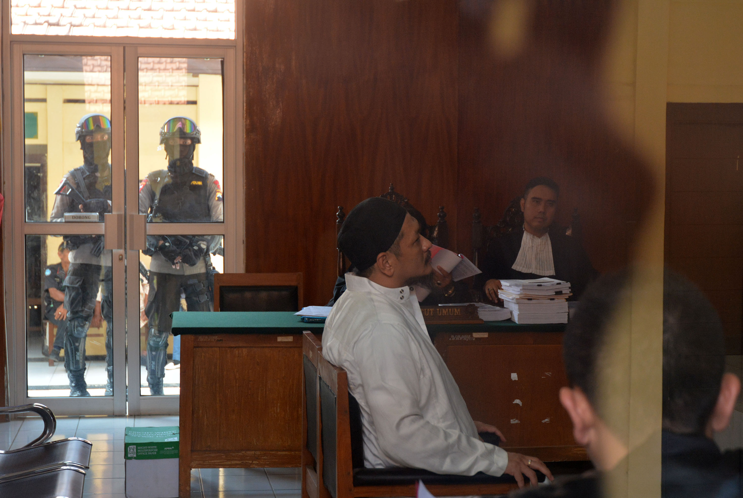 HARYONO, mantan Kepala Desa Selok Awar Awar, Lumajang, aktor intelektual pembunuhan Salim Kancil, divonis 20 tahun penjaran oleh Majelis Hakim Pengadilan Negeri Surabaya, Kamis (23/6).