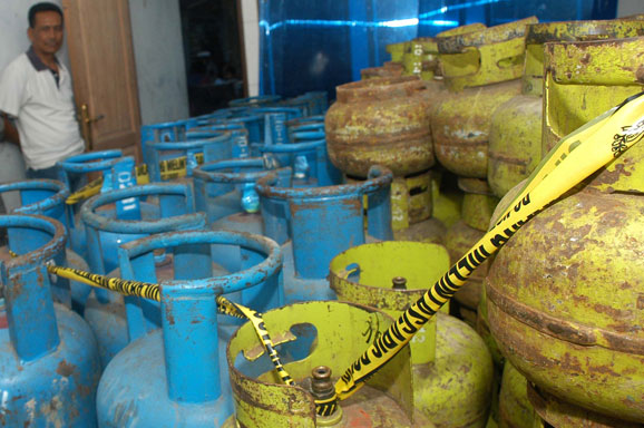 EMPAT orang dibekuk jajaran Subdit Sumdaling Ditreskrimsus Polda Metro Jaya karena diduga mengoplos tabung gas elpiji. Tiga dari empat tersangka, yakni H, B, dan J adalah pengecer gas elpiji sementara satu orang lainnya adalah karyawan B.