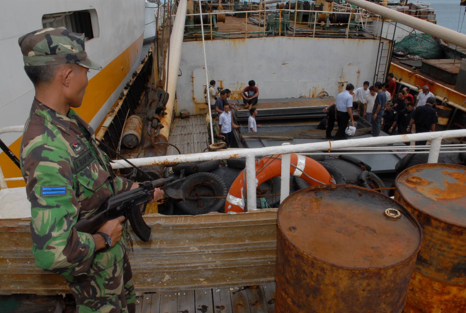 KAPAL perang TNI AL, KRI Oswald Siahaan-354 menangkap kapal Gui Bei Yu 27088 yang diduga mencuri ikan di perairan Natuna. Penangkapan dilakukan setelah dilakukan KRI Oswal beberapa kali tembakan peringatan.