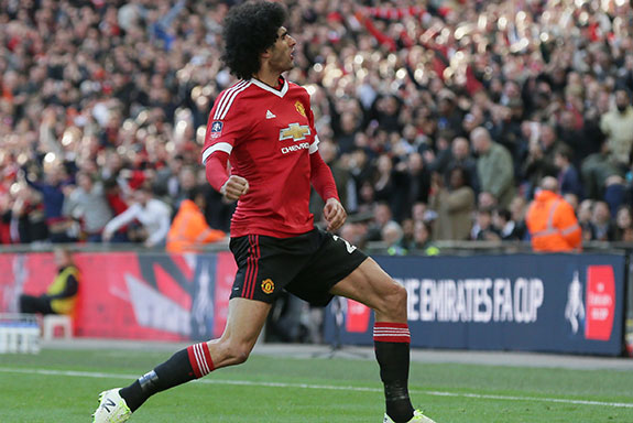 GELANDANG Manchester United Marouane Fellaini dan bek Leicester City Roberth Huth, Kamis (5/5) dijatuhi skors untuk tiga pertandingan oleh FA, atas aksi mereka pada pertandingan Liga Inggris yang berakhir imbang 1-1