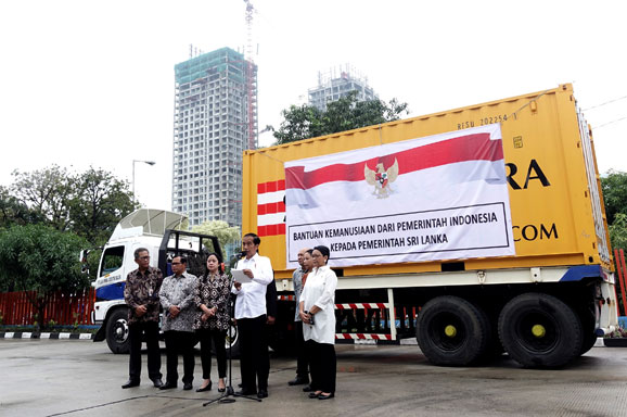 KONTAINER yang bertuliskan bantuan kemanusiaan dari pemerintah Indonesia kepada pemerintah