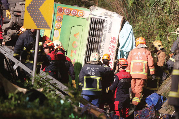 SEBUAH bus berisi 44 wisatawan lokal, kebanyakan manula, di Taiwan mengalami kecelakaan