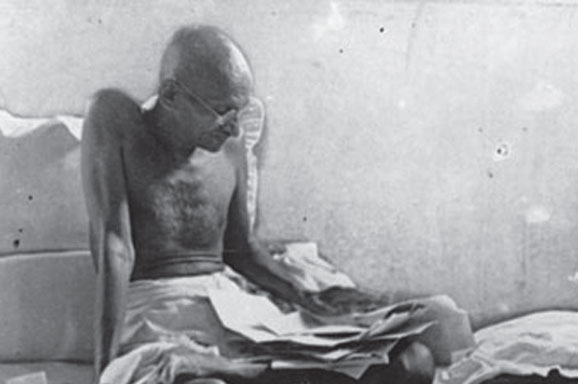 DI dalam selnya di Yerovda dekat Bombay, Mohandas Karamchand Gandhi memulai aksi protes