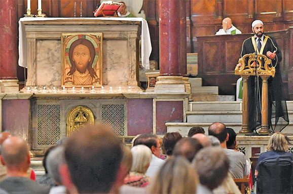 'INI bukan perang antaragama'. Tulisan itu tertera pada spanduk yang dibawa beberapa orang di barisan depan sekelompok umat muslim
