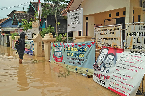 BANJIR bandang disertai rob melanda pesisir pantai barat Banten, Senin (25/7).