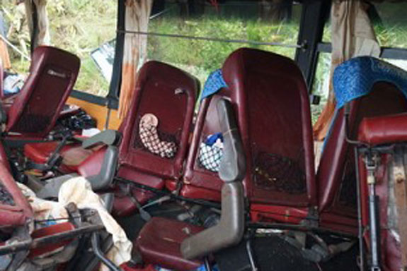 SEDIKITNYA 13 orang tewas dan puluhan lainnya luka-luka dalam kecelakaan lalu lintas mengerikan yang melibatkan dua bus