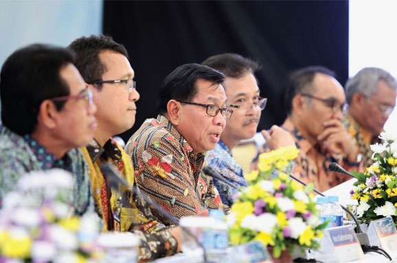 (DARI kiri) Menteri Pariwisata Arief Yahya, Sekretaris Kementerian Pariwisata Ukus Kuswara, Sekretaris Jenderal Kementerian Pekerjaan