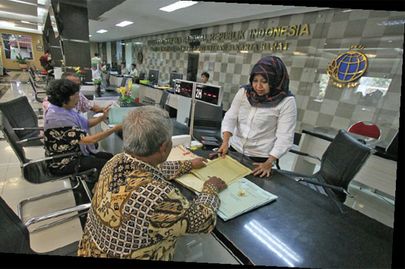 SURONO, 51, keluar Kantor Wilayah Badan Pertanahan Nasional (BPN) Tangerang Selatan sambil menenteng berkas.