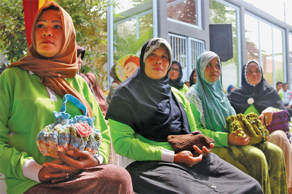 DENGAN cekatan jari-jari Ade Irawati, 33, merajut gulungan benang yang telah terurai di atas lantai.
