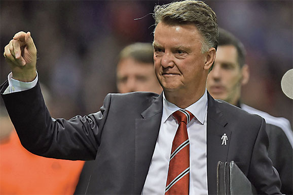 KEBERHASILAN Manchester United lolos ke semifinal Piala FA membuat sang arsitek, Louis van Gaal, semringah.