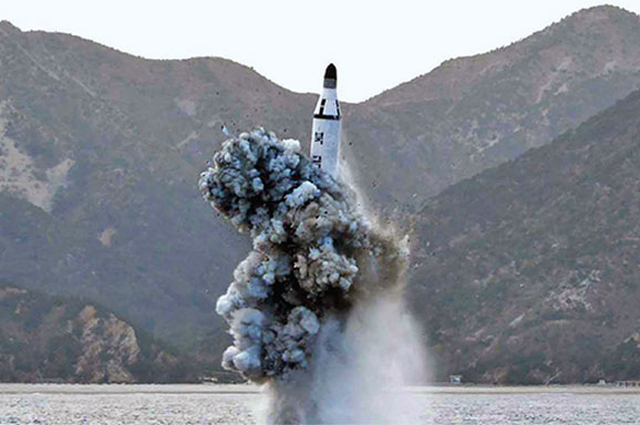 KOREA Utara sukses menguji coba peluncuran rudal balistik dari kapal selam (SLBM), Sabtu (23/4).