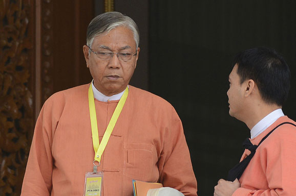 UNTUK pertama kalinya, presiden terpilih Myanmar, Htin Kyaw, Senin (21/3), resmi berkantor.