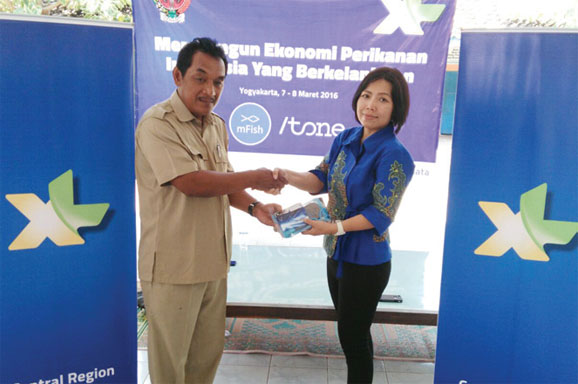 REGIONAL Sales Manager DI Yogyakarta, Yudith Sabrina (kanan), menyerahkan program sosialisasi aplikasi digital Mfish