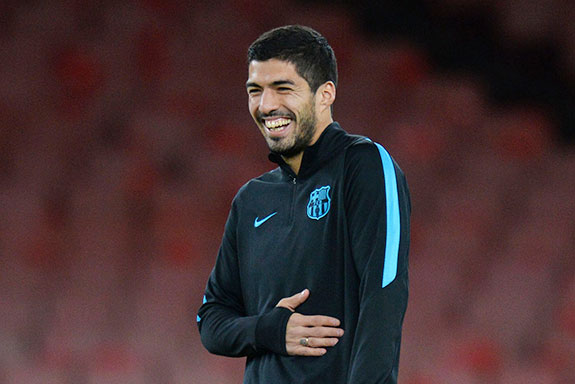 TERLEPAS perilaku sebelumnya yang menuai sanksi karena aksi menggigit pemain lawan, striker Barcelona Luis Suarez menunjukkan perilaku sebagai pemain