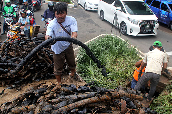 PENCURIAN kabel yang menyebabkan mampatnya saluran air di Jalan Medan Merdeka, Jakarta Pusat, diduga dilakukan beberapa kelompok.
