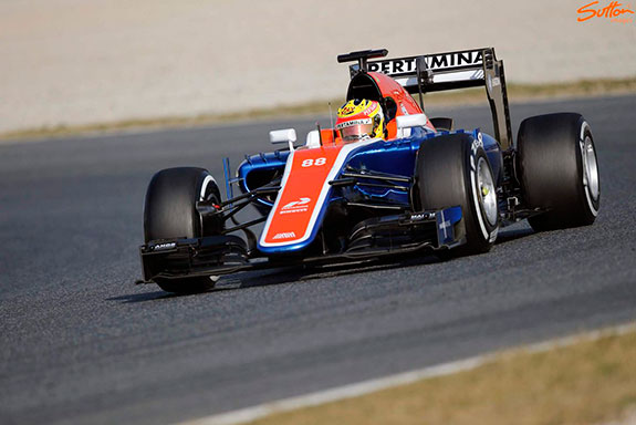 PEMBALAP Indonesia Rio Haryanto hanya sempat menuntaskan 25 lap pada penampilan perdananya di atas mobil Manor Racing MRT05 pada tes