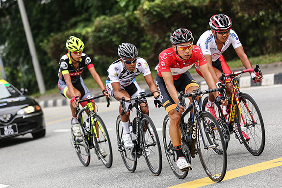 PEGASUS Continental Cycling Team (PCT) Indonesia pada Etape 1 Le Tour de Langkawi (LTdL) 2016 dari Kangar menunju Baling, Malaysia, Rabu (24/2).