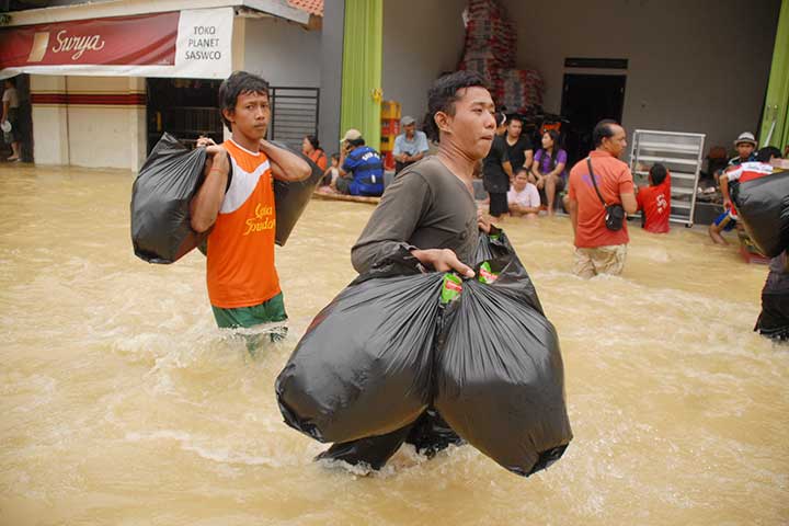 BANJIR akibat luapan Kali Kemuning di Kota Sampang, Jawa Timur, semakin meluas dan merendam desa-desa di sekitar aliran sungai tersebut.