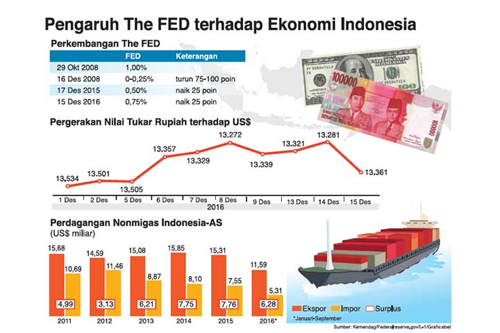 KENAIKAN suku bunga acuan Amerika Serikat (AS) atau Federal funds rate (FFR) dapat menjadi peluang untuk menggenjot ekspor produk Indonesia, khususnya ekspor nonminyak dan gas (migas).