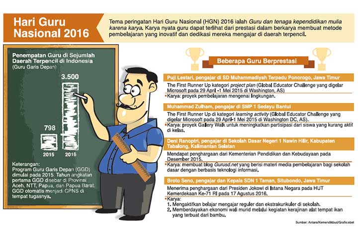 KEMULIAAN guru diukur bukan karena tuntutan mereka, melainkan karena karya dan inovasi pembelajaran yang dihasilkan.