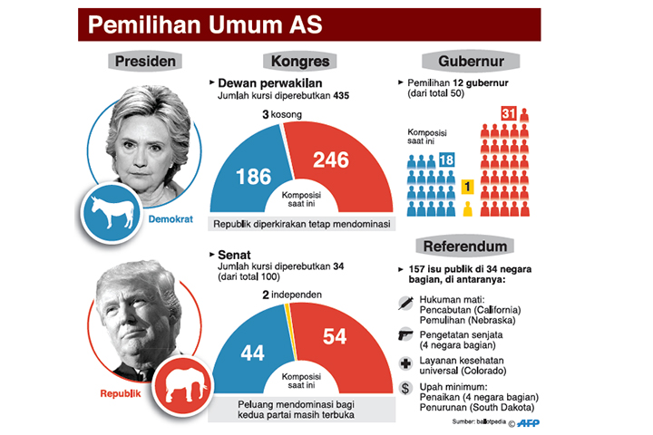 SIAPA pun pemenang pemilu presiden Amerika Serikat (AS) yang digelar pada Selasa (8/11) waktu setempat, ada satu hal yang sangat jelas. Apa satu hal tersebut? AS akan tetap melanjutkan campur tangan dalam sejumlah konflik di kawasan Timur Tengah.