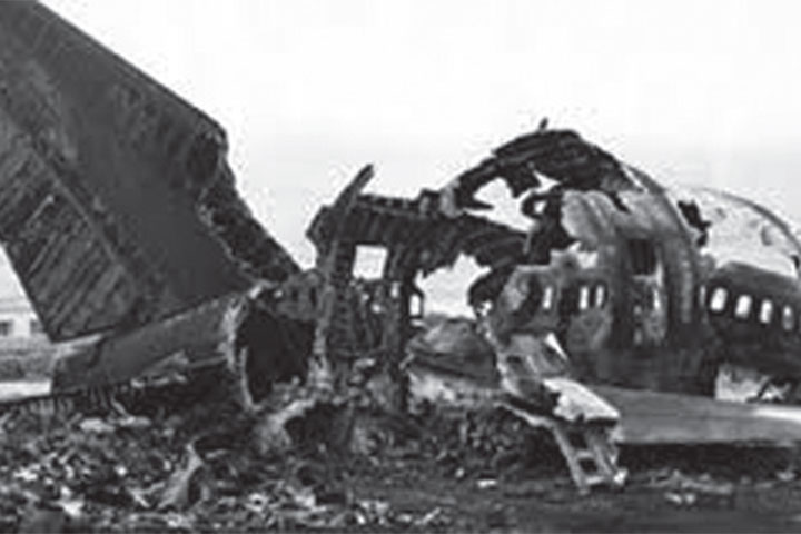 Pesawat itu menabrak gedung di pusat kota dan menghancurkan lapangan sepak bola yang dekat dengan landasan pesawat terbang.