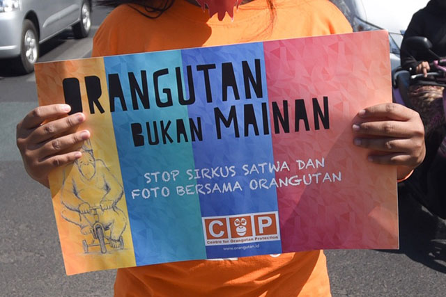 BELASAN aktivis yang tergabung dalam Center for Orangutan Protection berunjuk rasa di Kantor Kejari Bantul, DI Yogyakarta