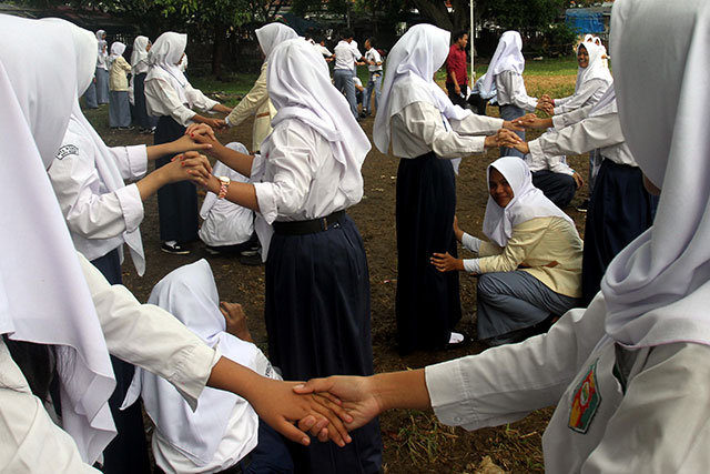 PELAKSANAAN kegiatan masa penyesuaian lingkungan siswa (MPLS), pengganti masa orientasi siswa (MOS), di wilayah Bogor, melibatkan aparat kepolisian.