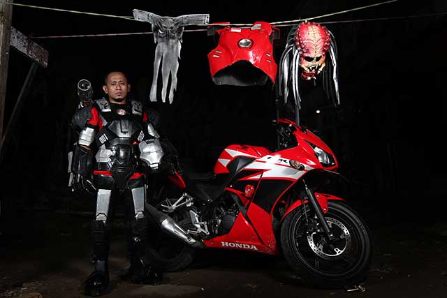 ADA Iron Man bawa motor di Jakarta. Itu yang terlintas di benak warga Jakarta ketika melihat Wahyudi Rianto, 40, tengah menyusuri jalanan Ibu Kota.