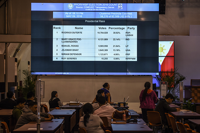 KANDIDAT presiden dari Partai Demokratik Filipina-Kekuatan Rakyat (PDP-Laban), Rodrigo Duterte, 71, unggul dalam pemilu Filipina y