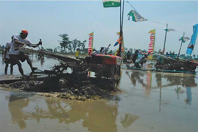 BALAP traktor telah menjadi tradisi sebagai perwujudan rasa syukur atas hasil panen di musim sebelumnya