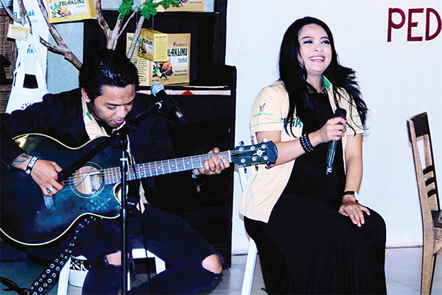 TANTRI Syalindri Ichlasari, 26, menyanyikan refrein lagu Hijaukan Bumi yang diciptakan band Kotak pada 2012.