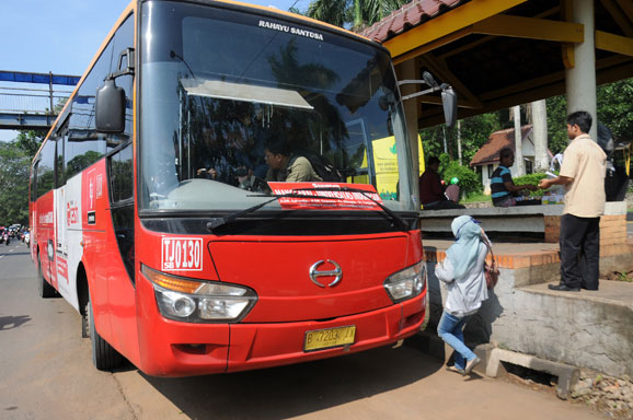 WARGA Kota Bekasi mulai menikmati layanan rute baru bus Transjakarta, mulai Senin (25/4).