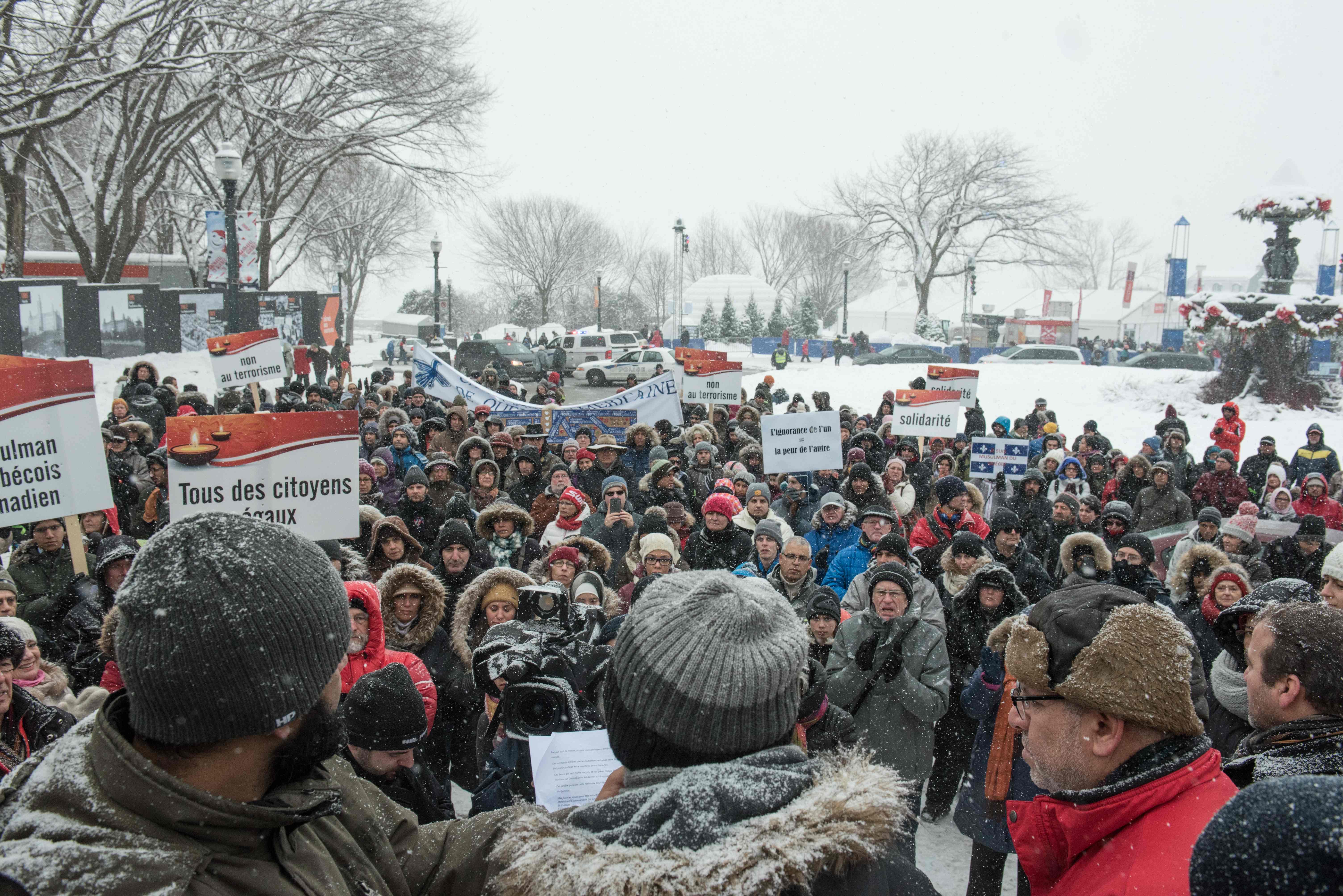 RATUSAN orang melawan salju dan cuaca dingin di Kota Quebec, Kanada, Minggu (5/2)