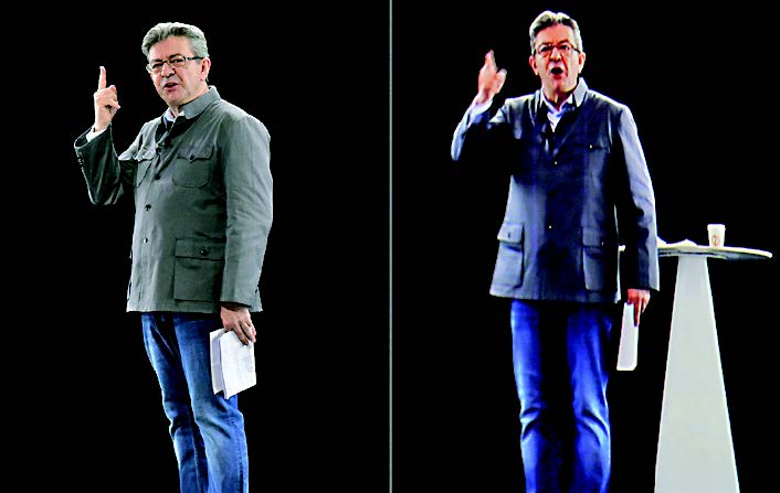 KANDIDAT Presiden Prancis Jean-Luc Melenchon dari kelompok sayap kiri tampil di hadapan pendukungnya pada Minggu (5/2) waktu setempat.