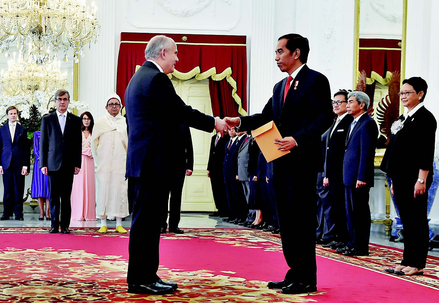 PRESIDEN RI Joko Widodo menerima delapan surat kepercayaan Duta Besar Luar Biasa dan Berkuasa Penuh (LBBP) Designate Resident dan Designate Nonresident untuk Indonesia dari delapan negara, Kamis (12/1).