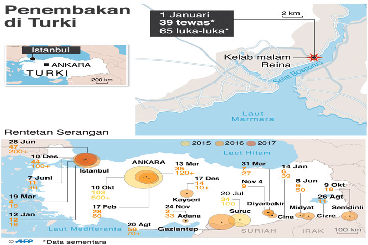 Sedikitnya 39 orang tewas ketika seseorang memberondong pengunjung kelab malam dengan senjata laras panjang.