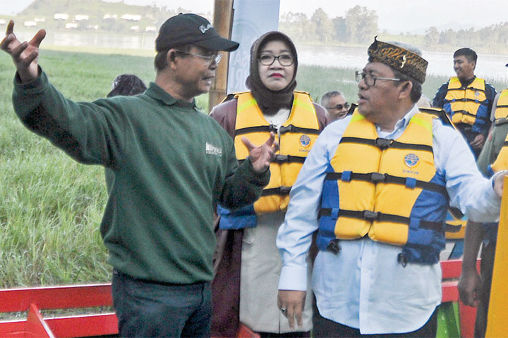 GUBERNUR Jawa Barat Ahmad Heryawan dan Pangdam III Siliwangi Mayjen Hadi Prasojo meninjau arena pertandingan ski air PON XIX/2016 Jabar di kawasan Kota Baru Parahyangan, Kecamatan Padalarang, Kabupaten Ban-dung, Kamis (8/9).