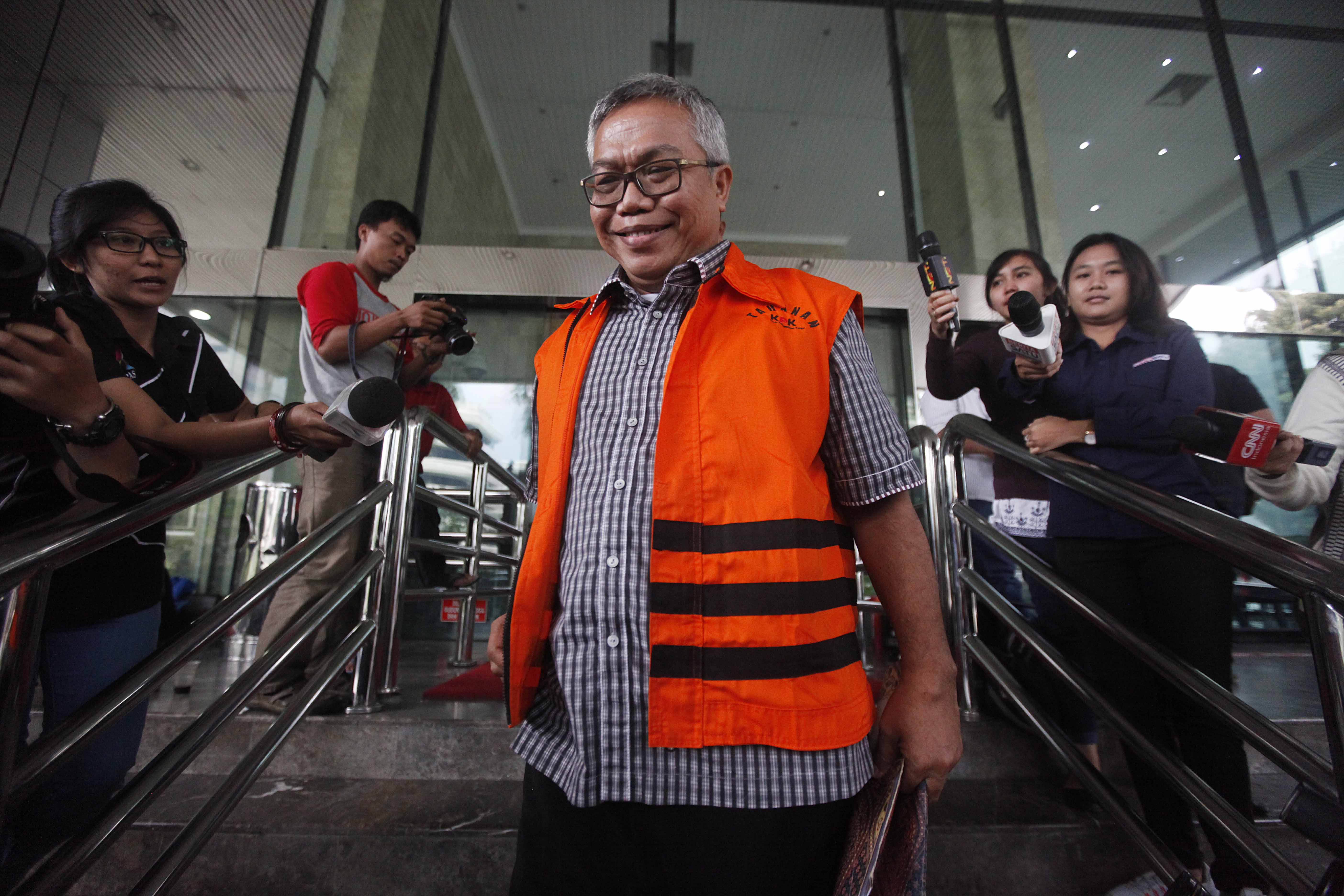 TERSANGKA koruptor yang mengenakan rompi warna jingga itu tertawa amat lepas.