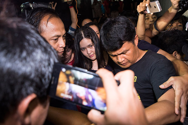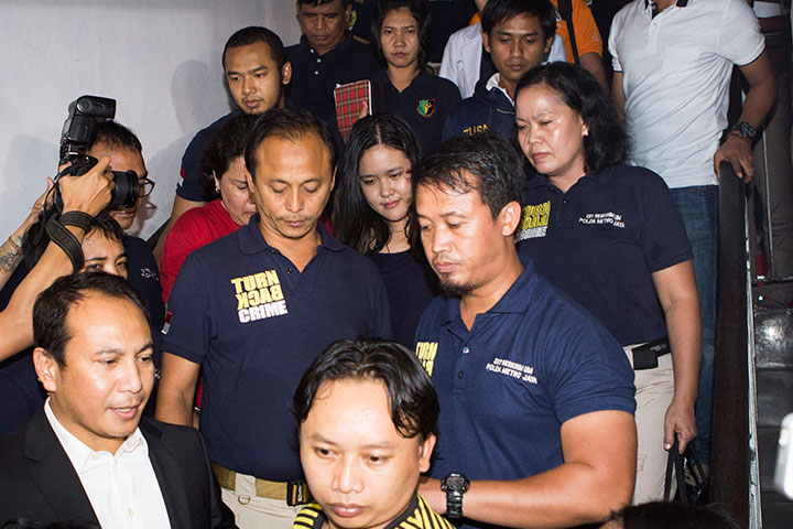 Jessica Kumala Wongso, 27, ditangkap penyidik Direktorat Reserse Kriminal Umum Polda Metro Jaya di kamar 822 Hotel Neo Mangga Dua, Sabtu (30/1) pagi.