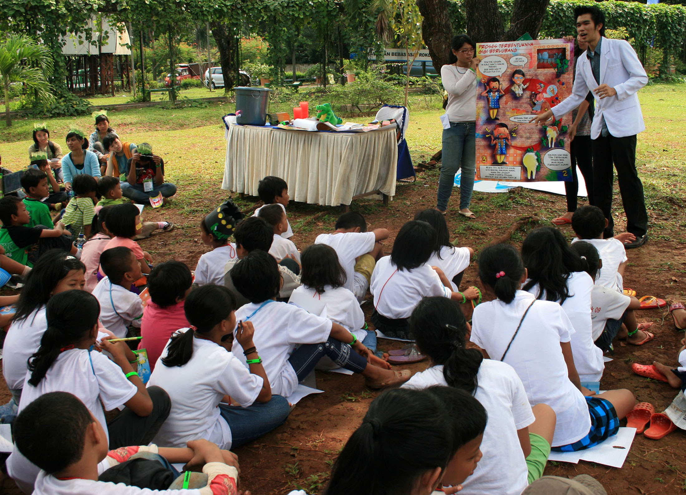 KERTAS yang sudah digambar dan diwarnai itu ditempel di bagian depan tenda. Ada pula tulisan anak-anak yang disimpan pada pohon harapan.